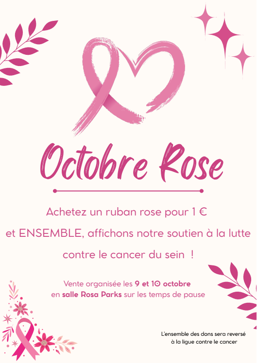 De plus, une journée en rose aura lieu le vendredi 10 octobre : élèves et personnels sont invités à porter un vêtement ou un accessoire rose, en signe de soutien et de solidarité.