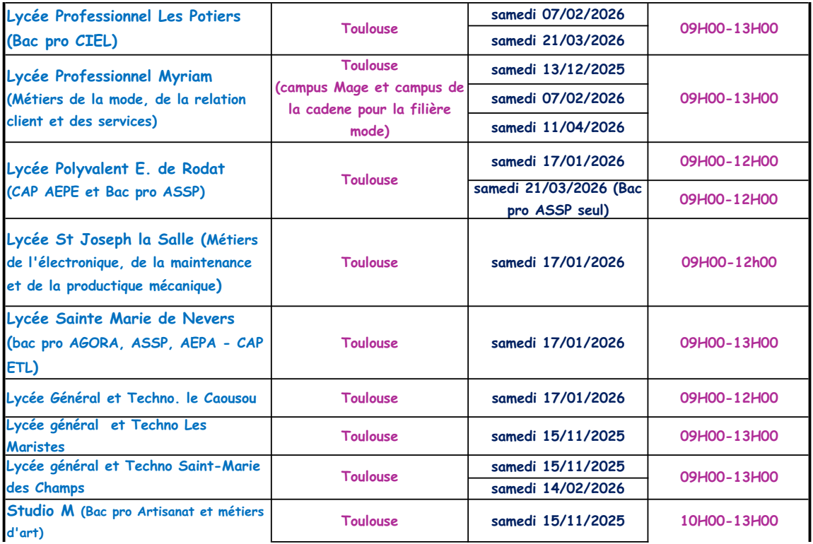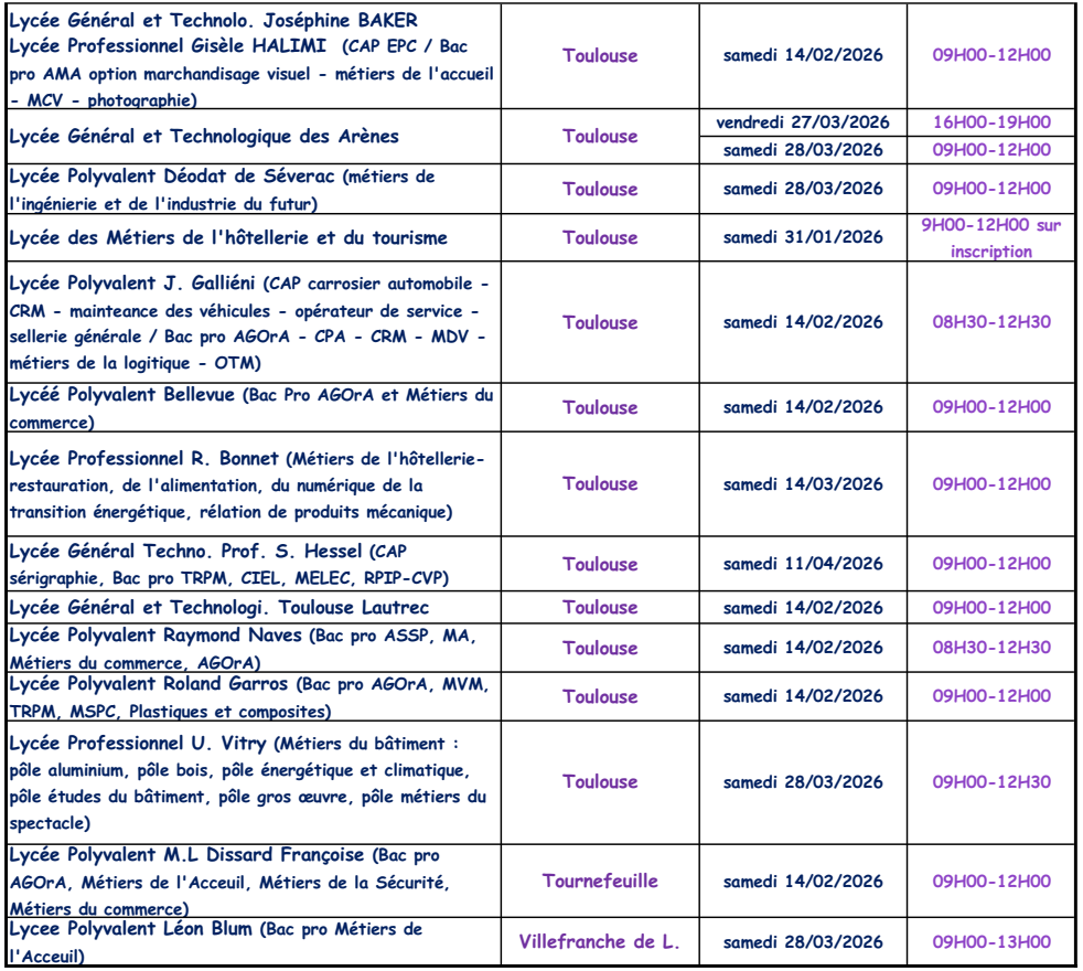 Journées Portes Ouvertes (JPO) des lycées Publics et Privés (31)